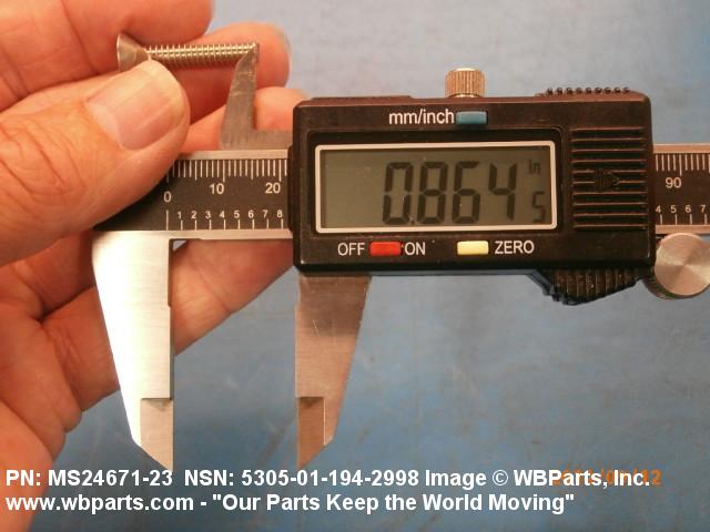 Part Alternates: MS2467123, MS24671-23, FFS86, FF-S-86, 5305-01-194-2998, 01-194-2998, 5305011942998, 011942998