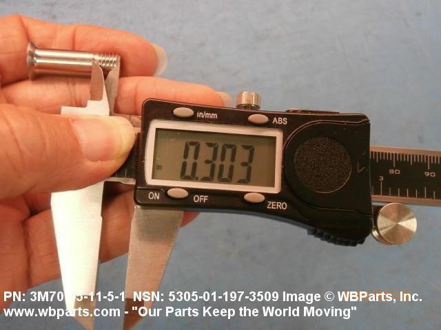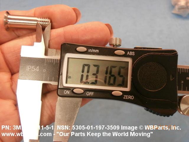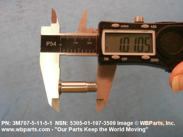 5305-01-197-3509 A SCREW, MACHINE or SCREW, CAP, SOCKET HEAD whose unthreaded portion is of specified grip length, plated or unplated, and is machined to a tolerance of one thousandth (0.001 IN.) (0.025 mm) or less of a specific diameter for items (1.000 IN.) (25 mm) or less in diameter. Items over (1.000 IN.) (25 mm) in diameter shall have a tolerance of fifteen ten thousandths (0.0015 IN.) (0.038 mm) or less. The nominal major diameter of the threads shall be at least one thousandth (0.001 IN.) (0.025 mm) below the minimum shank diameter, but not below the minimum major diameter for applicable class of fit, as shown in the Screw Thread Standards, FED STD H28 and/or other nationally recognized standards. The head is designed to be held or driven with an inserted driver. It is not designed for rotation by the thumb and fingers. A locking feature may be incorporated in the design of the head or threads.