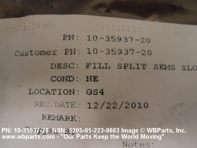 Part Alternates: 10-35937-20, 5305-01-223-9663, 01-223-9663, 5305012239663, 103593720, 012239663