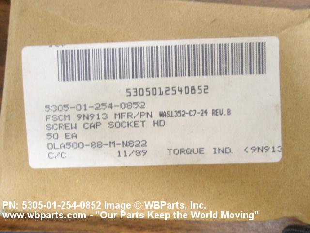 NSN 5305-01-254-0852 NAS1352C724, NAS1352C7-24, 01-254-0852