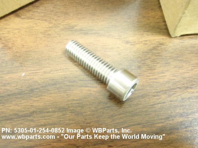 5305-01-254-0852 An externally threaded fastener whose threaded portion is of one nominal diameter. The head has an internal socket or multiple spline for use with an inserted driver. A locking feature may be incorporated in the design of the head or threads. Excludes items with bevel (conical) heads. See BOLT, INTERNAL WRENCHING. Excludes SCREW, SHOULDER; and SCREW, MACHINE.