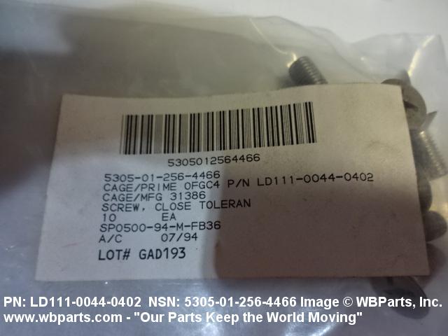 Part Alternates: LD11100440402, LD111-0044-0402, 5305-01-256-4466, 01-256-4466, 5305012564466, 012564466
