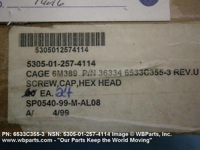 Part Alternates: 6533C3553, 6533C355-3, 5305-01-257-4114, 01-257-4114, 5305012574114, 012574114
