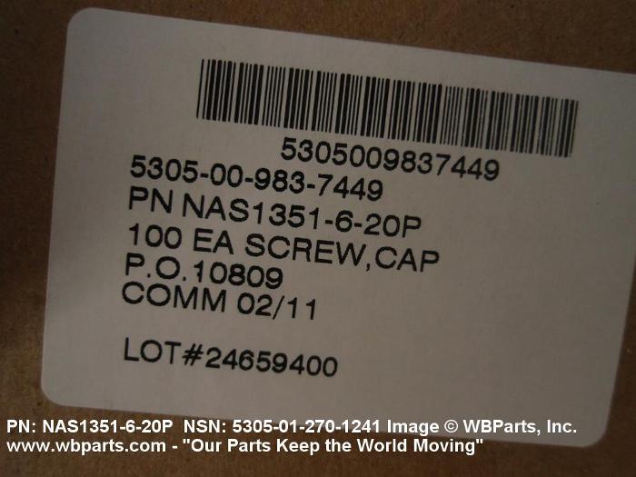 NSN 5305-01-270-1241 NAS1351620P, NAS1351-6-20P, 01-270-1241