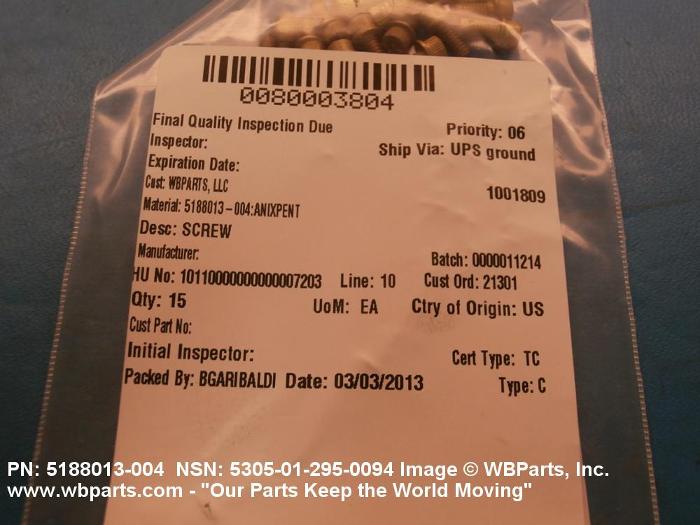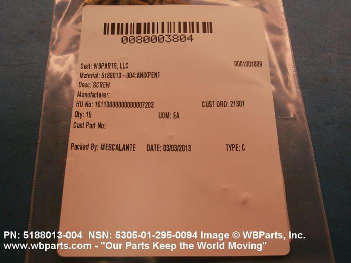 NSN 5305-01-295-0094 5188013004, 5188013-004, 01-295-0094