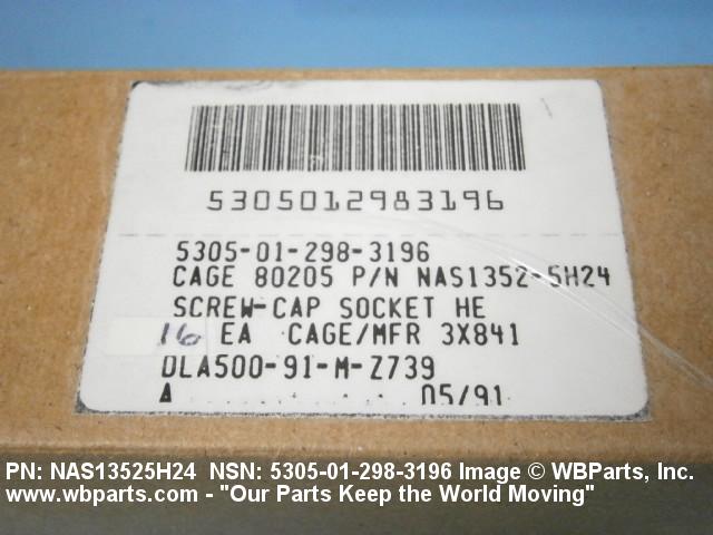 NSN 5305-01-298-3196 NAS13525H24, NAS1352-5H24, 01-298-3196