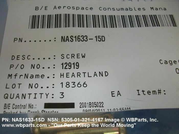 NSN 5305-01-321-4167 NAS112315D, NAS1123-15D, NAS163315D