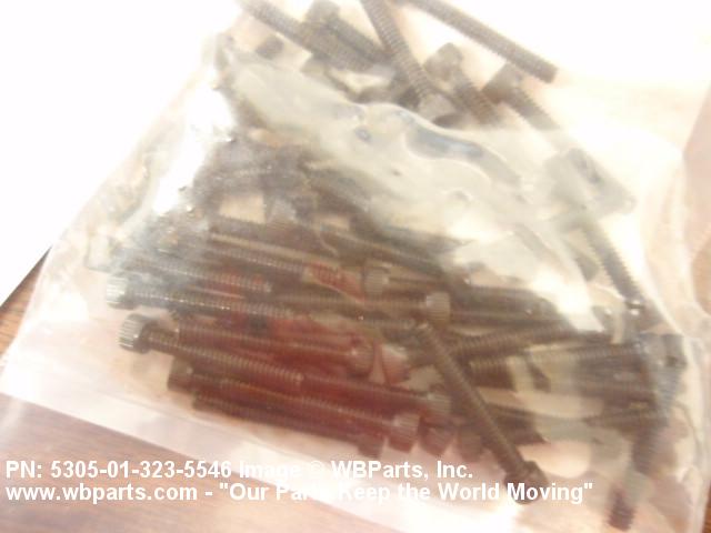 5305-01-323-5546 An externally threaded fastener whose threaded portion is of one nominal diameter. The head has an internal socket or multiple spline for use with an inserted driver. A locking feature may be incorporated in the design of the head or threads. Excludes items with bevel (conical) heads. See BOLT, INTERNAL WRENCHING. Excludes SCREW, SHOULDER; and SCREW, MACHINE.