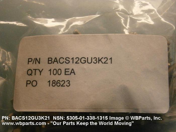 Part Alternates: BACS12GU3K21, 5305-01-338-1315, 01-338-1315, 5305013381315, 013381315