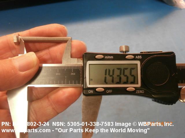 Part Alternates: NAS1802324, NAS1802-3-24, 5305-01-338-7583, 01-338-7583, 5305013387583, 013387583