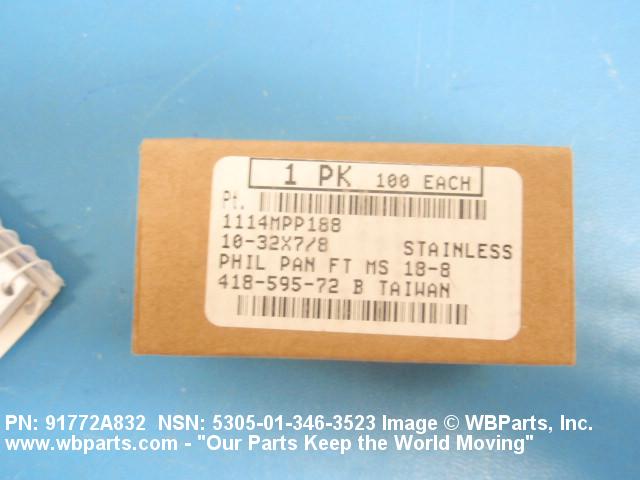 Part Alternates: 91772A832, 5305-01-346-3523, 01-346-3523, 5305013463523, 013463523