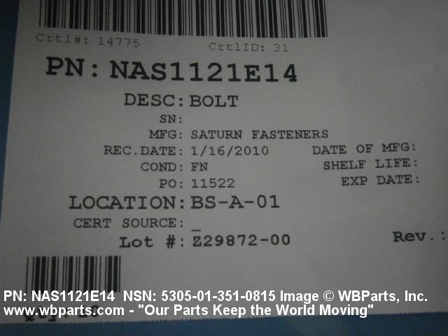 NSN 5305-01-351-0815 NAS1121E14, 01-351-0815, 013510815