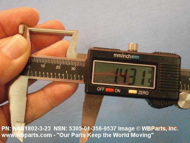 Part Alternates: NAS1802323, NAS1802-3-23, MILB87114, MIL-B-87114, 5305-01-356-9537, 01-356-9537, 5305013569537, 013569537