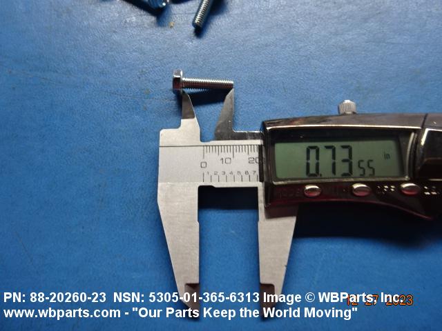 Part Alternates: 88-20260-23, 5305-01-365-6313, 01-365-6313, 5305013656313, 882026023, 013656313