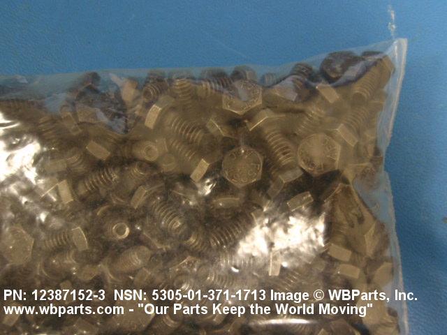 5305-01-367-9828 An externally threaded fastener designed for insertion into holes in assembled parts, for mating with a preformed internal thread and for tightening or releasing by torquing the head. The threaded and unthreaded portions are both of the same nominal diameter of 0.190 inch (5 mm) or larger. Head dimensions and sizes of threaded and unthreaded portions shall conform to internationally recognized fastener standards. The thread length being the controlled dimension, the grip length is not specified. A locking feature may be incorporated in the design of the head or threads. The head is not designed to be held or driven with an inserted driver or by the thumb and fingers. Excludes BOLT,MACHINE; BOLT,EXTERNALLY RELIEVED BODY; BOLT,INTERNAL WRENCHING; and SCREW,CAP,SOCKET HEAD.