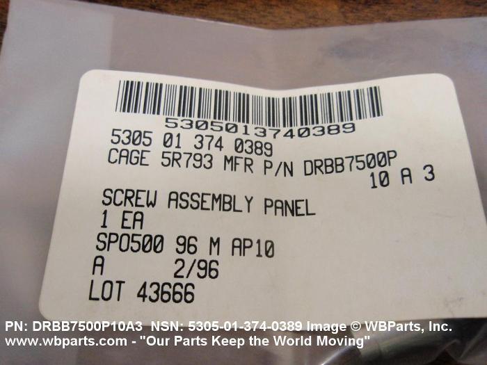 NSN 5305-01-374-0389 DRBB7500P10A3, DRBB7500P-10-A-3, DRBB7500P113
