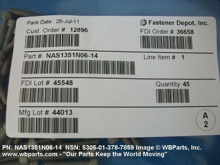 NSN 5305-01-378-7859 NAS1351N0614, NAS1351N06-14, 01-378-7859