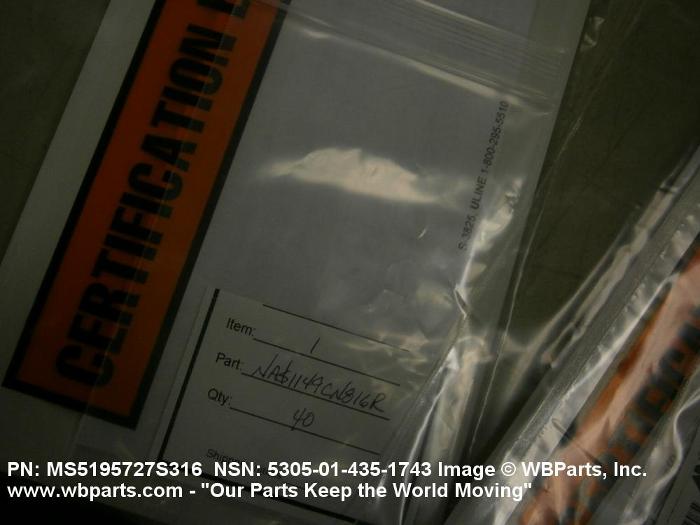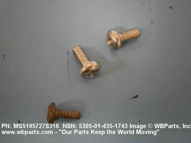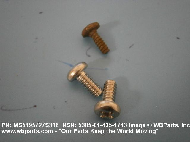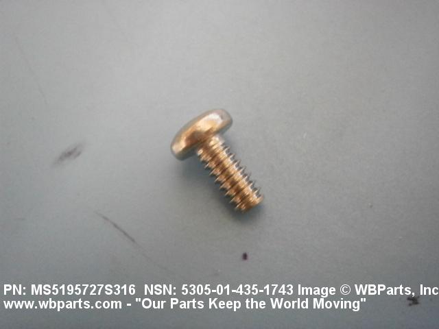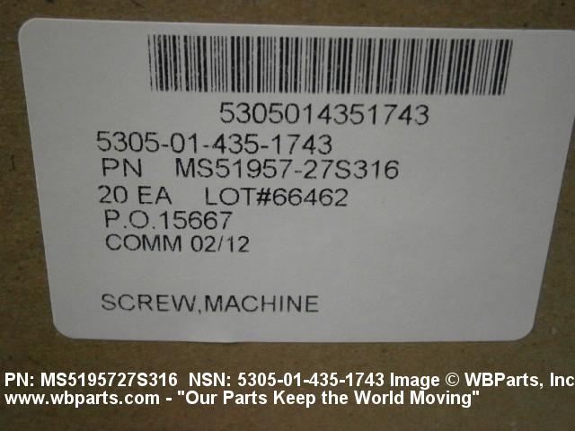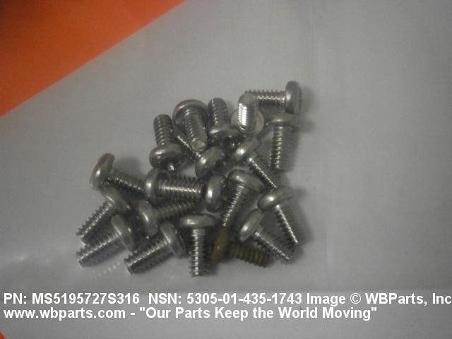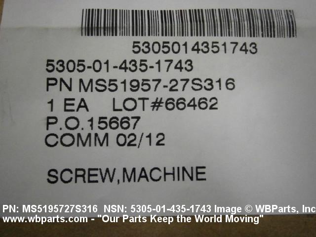 Part Alternates: MS5195727CRES316ONLY, MS51957-27CRES316ONLY, MS5195727S316, MS51957-27S316, 5305-01-435-1743, 01-435-1743, 5305014351743, 014351743