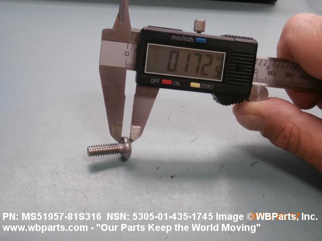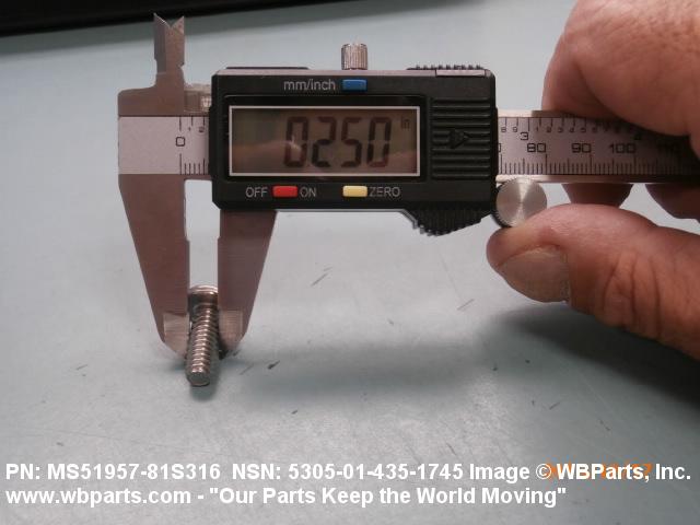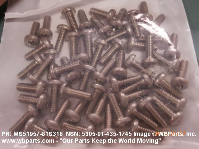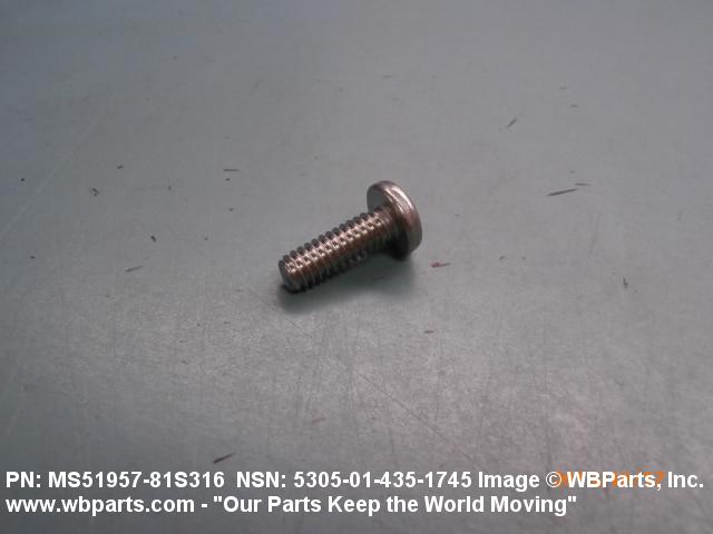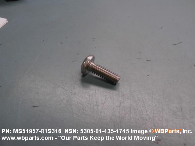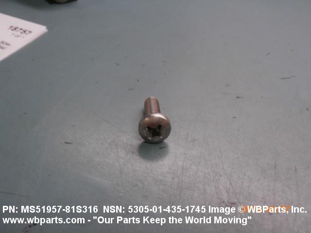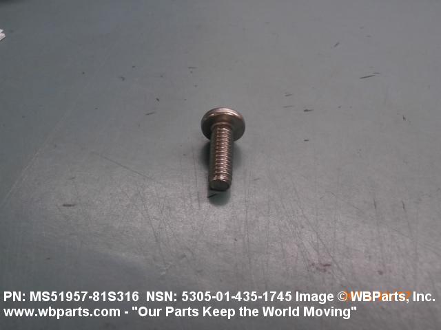 Part Alternates: MS5195781CRES316ONLY, MS51957-81CRES316ONLY, MS5195781S316, MS51957-81S316, 5305-01-435-1745, 01-435-1745, 5305014351745, 014351745
