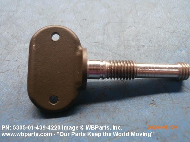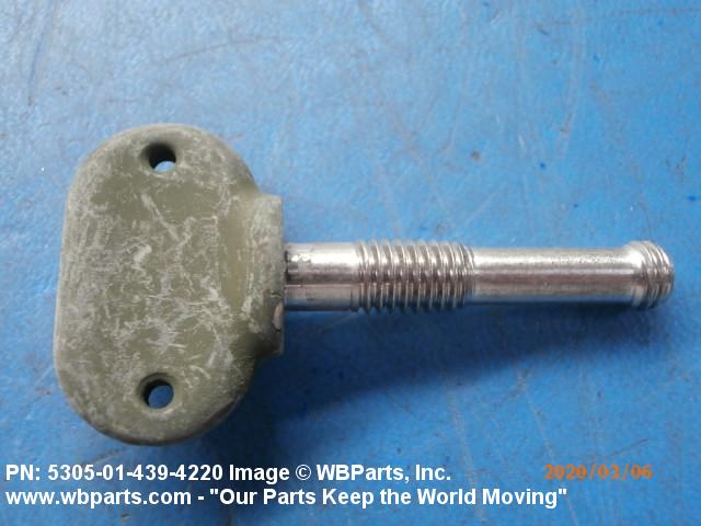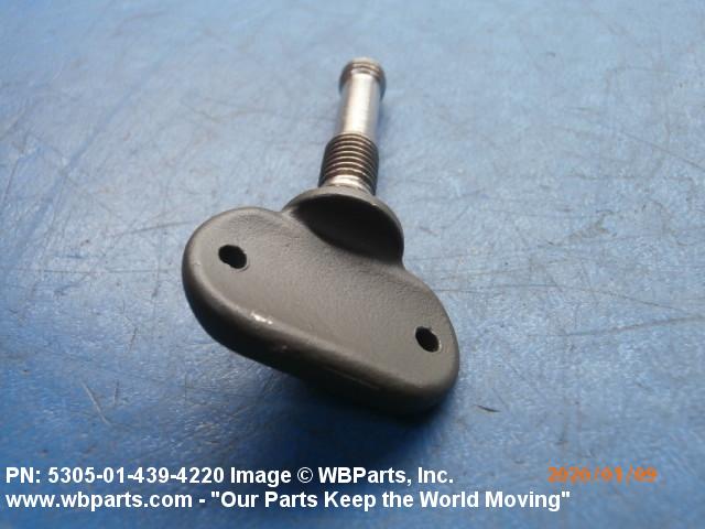 5305-01-439-4220 An externally threaded fastener whose threaded portion is of one nominal diameter. It may have an unthreaded portion with a diameter less than, equal to, or greater than the diameter of the threaded portion. It has either a vertically flattened, circular knurled, or wing type head, all of which are designed for rotation by the thumb and fingers. For items having wrenching facilities such as socket recess, multiple spline or slot heads, use SCREW (as modified) or BOLT (as modified).