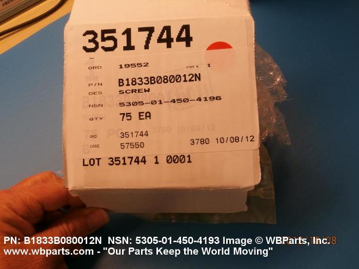 Part Alternates: B1833B080012N, 5305-01-450-4193, 01-450-4193, 5305014504193, 014504193