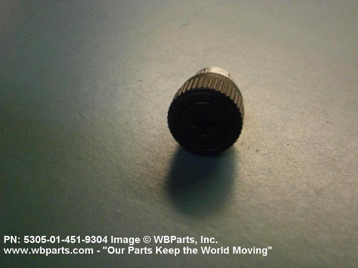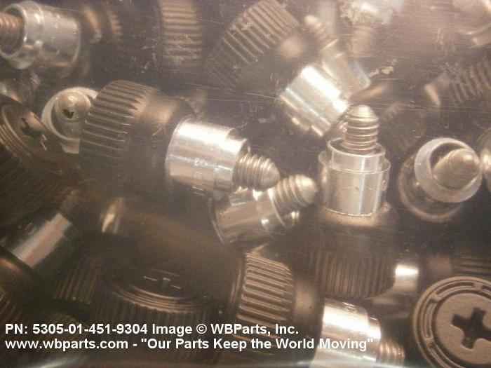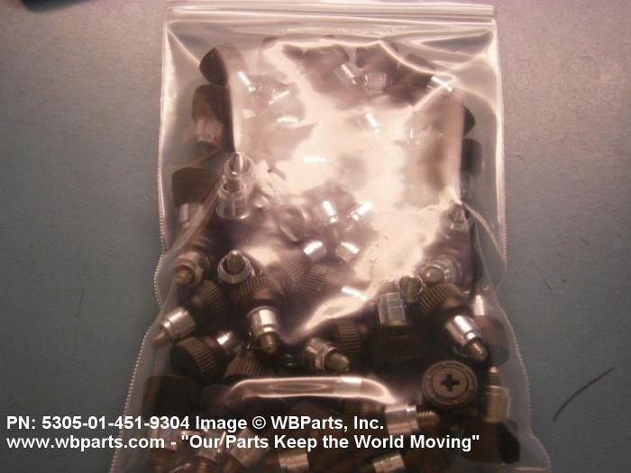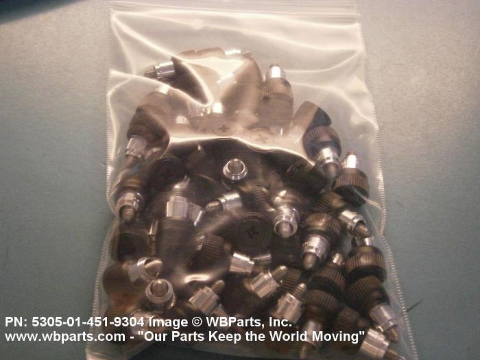 5305-01-451-9304 An externally threaded fastener whose threaded portion is of one nominal diameter. It may have an unthreaded portion with a diameter less than, equal to, or greater than the diameter of the threaded portion. It has either a vertically flattened, circular knurled, or wing type head, all of which are designed for rotation by the thumb and fingers. For items having wrenching facilities such as socket recess, multiple spline or slot heads, use SCREW (as modified) or BOLT (as modified).