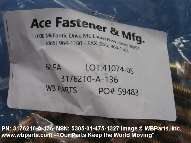 NSN 5305-01-475-1327 2593856-87, 3176210A136, 3176210-A-136