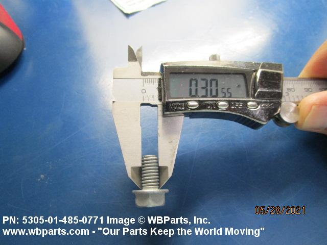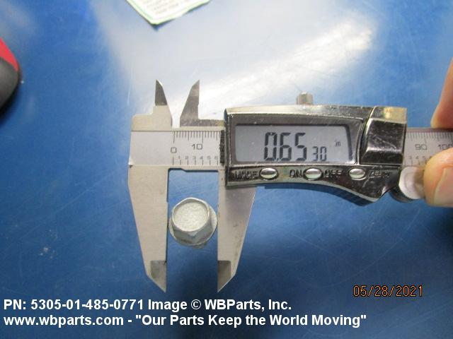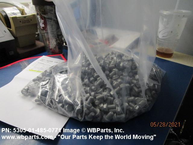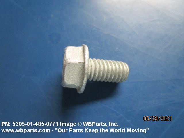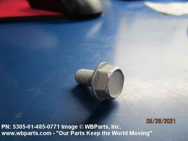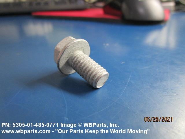 5305-01-485-0771 An externally threaded fastener whose threaded portion is of one nominal diameter, No 0 (0.060 in./1.5 mm) or larger, designed to be held or driven with either a wrench or an inserted driver or both (excluding internal socket or internal multiple spline types), in sizes below No. 10 (0.190 in./5 mm). No. 10 and larger sizes must have a head designed for any type inserted driver (excluding internal socket or internal multiple spline types), but may also be designed for external wrenching. A locking feature may be incorporated in the design of the head or threads. Excludes BOLT, CLEVIS; BOLT, EXTERNALLY RELIEVED BODY; SCREW, EXTERNALLY RELIEVED BODY; and SCREW, ASSEMBLED WASHER. See also, SCREW, INSTRUMENT; BOLT, MACHINE; BOLT, INTERNAL WRENCHING; and SCREW, CAP SOCKET HEAD.
