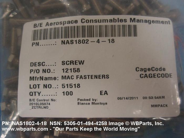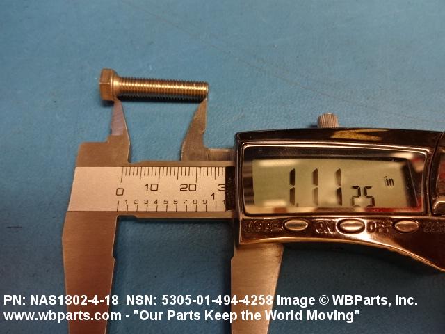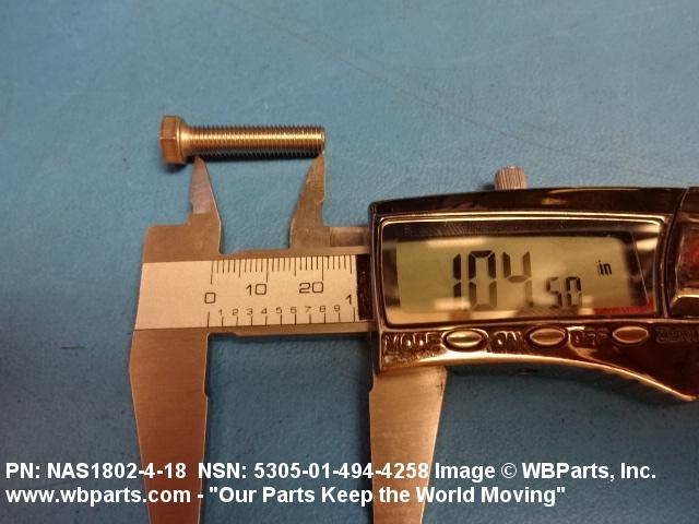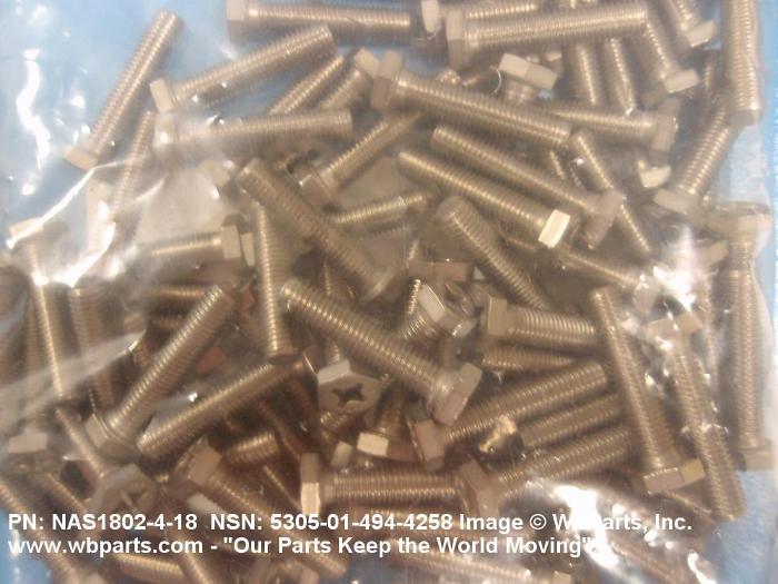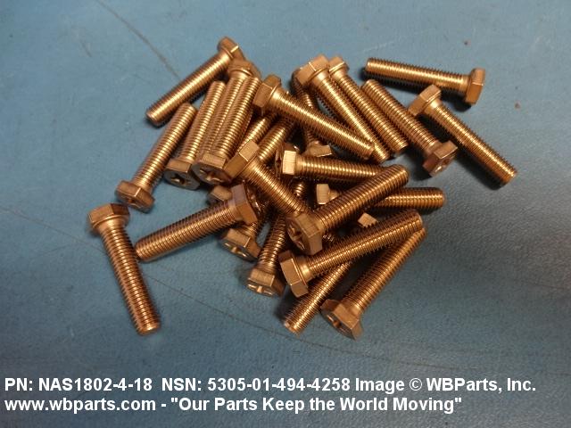 Part Alternates: NAS1802418, NAS1802-4-18, 5305-01-494-4258, 01-494-4258, 5305014944258, 014944258