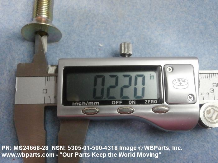 Part Alternates: MS2466828, MS24668-28, 5305-01-500-4318, 01-500-4318, 5305015004318, 015004318