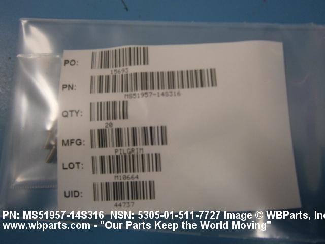 | MS51957-14S316 | 96906 | MILITARY STANDARDS PROMULGATED BY MILITARY DEPARTMENTS |