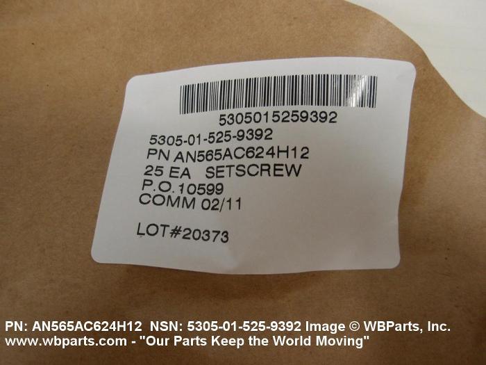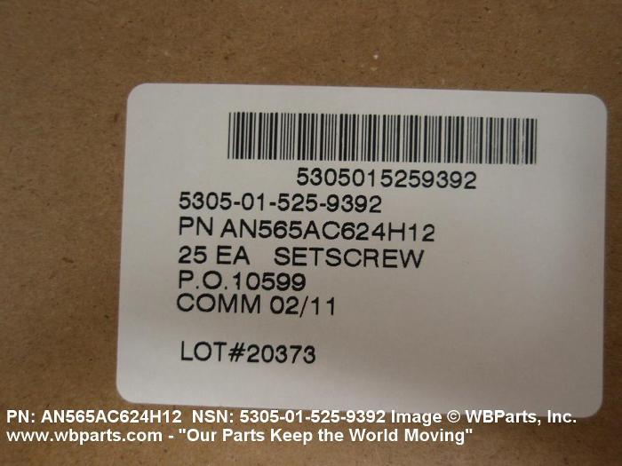 Part Alternates: AN565AC624H12, 5305-01-525-9392, 01-525-9392, 5305015259392, 015259392