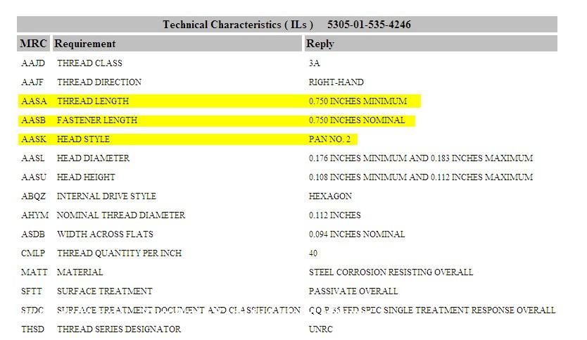 Part Alternates: NAS1352C04LE8, 5305-01-535-4246, 01-535-4246, 5305015354246, 015354246
