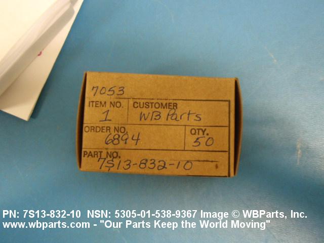Part Alternates: 7S1383210, 7S13-832-10, 5305-01-538-9367, 01-538-9367, 5305015389367, 015389367