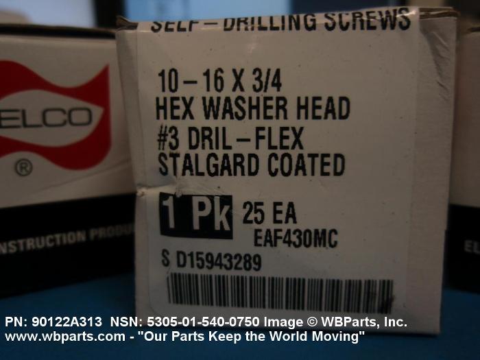 5305-01-540-0750 A hardened, externally-threaded fastener with a self-drilling point. It drills, taps and fastens and may have a machine screw thread or a nonmachine screw thread. The threads usually extend from behind the pilot to the bearing surface of the head.
