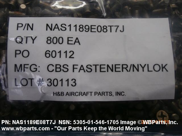 Part Alternates: NAS1189E08T7J, 5305-01-546-1705, 01-546-1705, 5305015461705, 015461705