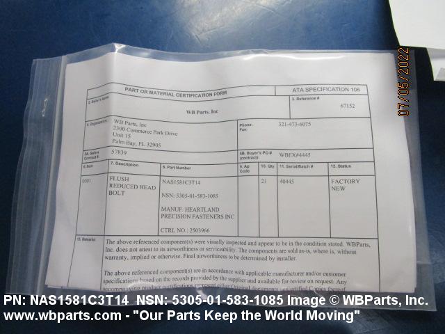 NSN 5305-01-583-1085 NAS1581C3T14, 01-583-1085, 015831085