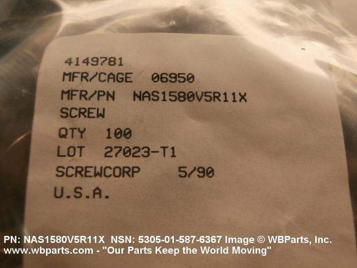 Part Alternates: NAS1580V5R11X, 5305-01-587-6367, 01-587-6367, 5305015876367, 015876367