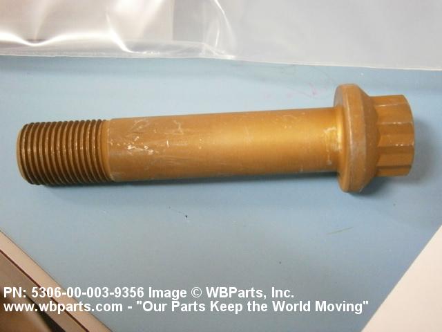 5306-00-003-9356 A high strength, 160,000 pounds per square inch (1100 megapascals) minimum tensile strength externally threaded fastener designed for use in applications involving great shear stress. The head is designed to accommodate an external wrench or driver. The head is not designed to be held or driven with an inserted driver, nor is it designed for rotation by the thumb and fingers. The unthreaded portion is of specific grip length, plated or unplated, and is machined to a tolerance of one thousandth (0.001) of an inch (0.025 mm) or less of a specific diameter for items one inch (25 mm) or less in diameter. Items over one inch (25 mm) in diameter shall have a tolerance of fifteen ten thousandths (0.0015) of an inch (0.038 mm) or less. The nominal major diameter of the threads shall be at least one thousandth (0.001) of an inch (0.025 mm) below the minimum shank diameter, but not below the minimum major diameter for applicable class of fit, as shown in the Screw Thread Standards, FED STD H28 and/or other nationally recognized standards. A locking feature may be incorporated in the design of the head or threads. See BOLT, MACHINE and BOLT, CLEVIS.