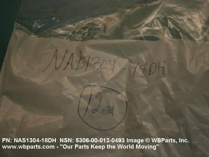 Part Alternates: NAS130418DH, NAS1304-18DH, 5306-00-012-0493, 00-012-0493, 5306000120493, 000120493