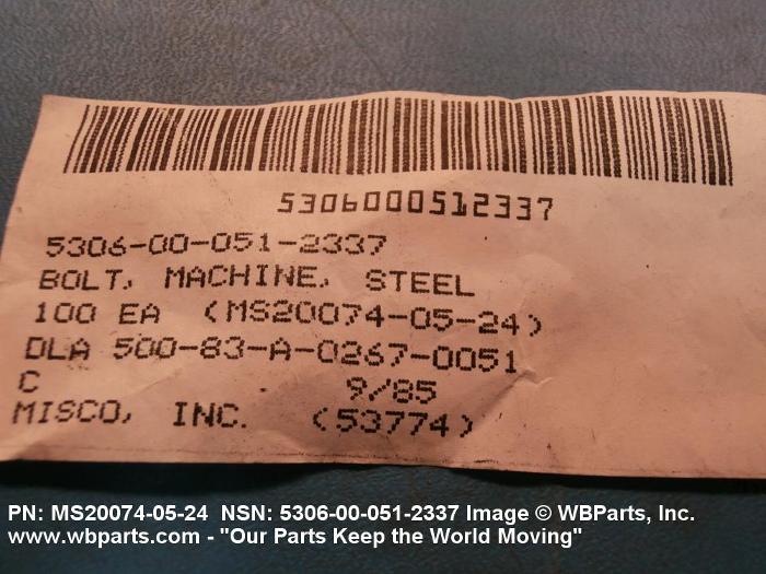NSN 5306-00-051-2337 MS200740524, MS20074-05-24, NASM6812