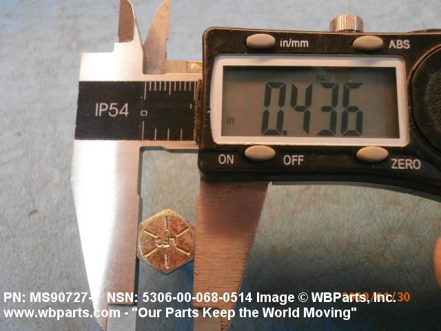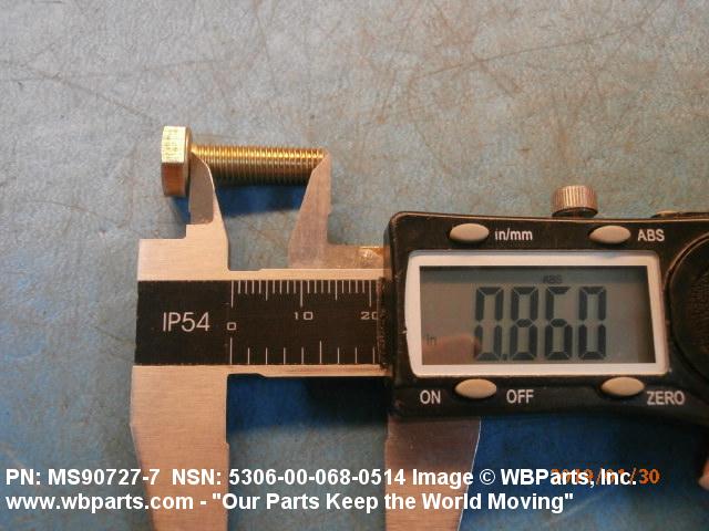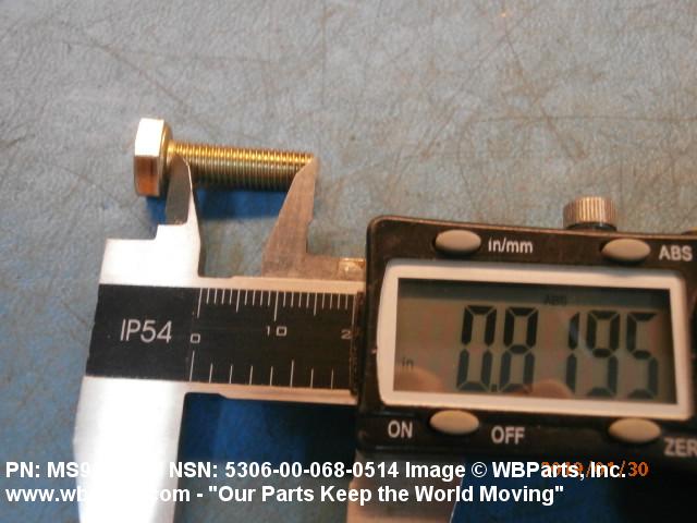 5306-00-068-0514 An externally threaded fastener designed for insertion through holes in assembled parts and normally intended to be tightened or released by torquing a nut. The threaded and unthreaded portions are both of one nominal diameter of 0.190 inch (5 mm) or larger. The head is not designed to be held or driven with an inserted driver or by the thumb and fingers. A locking feature may be incorporated in the design of the head or threads. Head dimensions and sizes of threaded and unthreaded portions shall conform to internationally recognized fastener standards. For items having a grip length portion machined to a tolerance of 0.0015 inch (0.038 mm) or less, BOLT, SHEAR. See also SCREW, CAP, HEXAGON HEAD and SCREW, MACHINE.