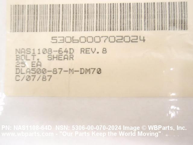 NSN 5306-00-070-2024 NAS110864D, NAS1108-64D, 00-070-2024