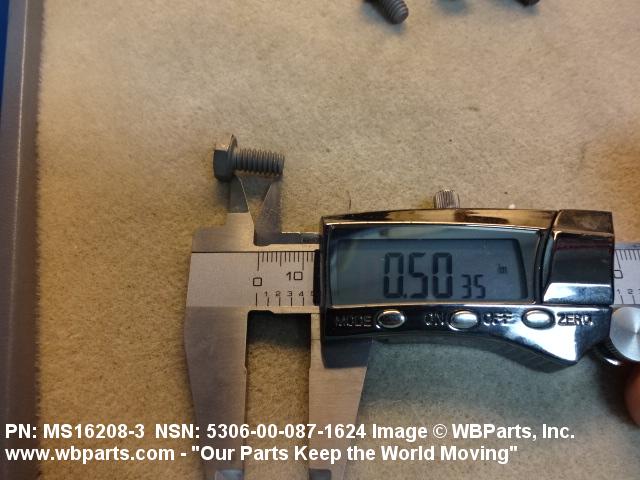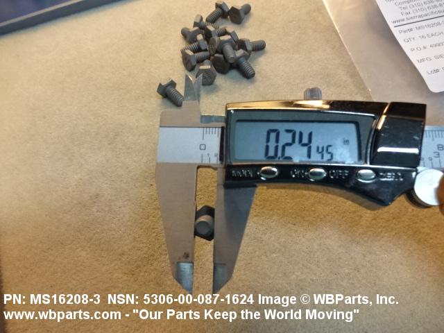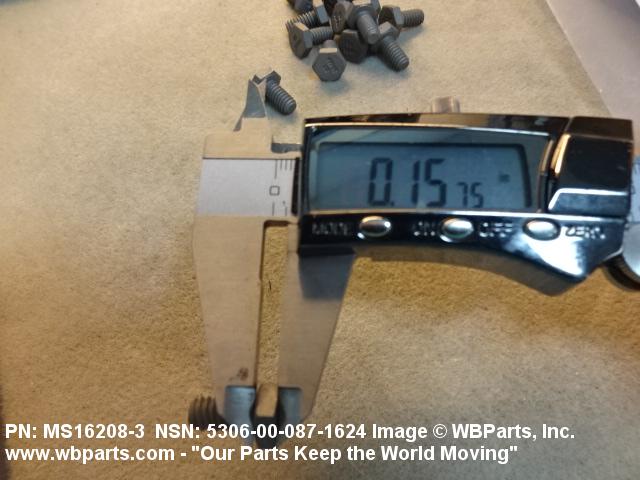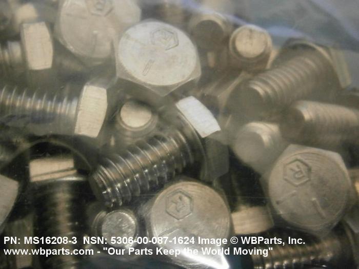 Part Alternates: MS162083, MS16208-3, FFB575, FFB575TYPE3GRADE1, 10114148 , 5306-00-087-1624, 00-087-1624, 5306000871624, 000871624