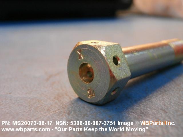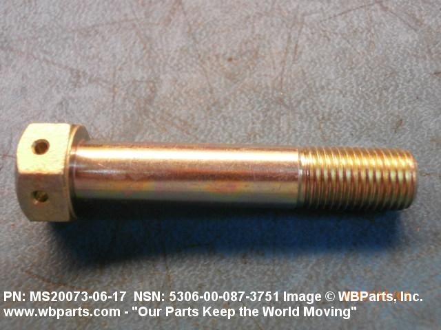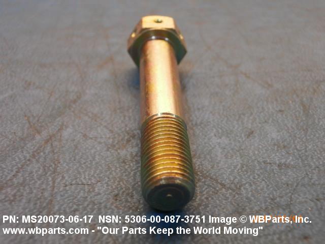5306-00-087-3751 An externally threaded fastener designed for insertion through holes in assembled parts and normally intended to be tightened or released by torquing a nut. The threaded and unthreaded portions are both of one nominal diameter of 0.190 inch (5 mm) or larger. The head is not designed to be held or driven with an inserted driver or by the thumb and fingers. A locking feature may be incorporated in the design of the head or threads. Head dimensions and sizes of threaded and unthreaded portions shall conform to internationally recognized fastener standards. For items having a grip length portion machined to a tolerance of 0.0015 inch (0.038 mm) or less, BOLT, SHEAR. See also SCREW, CAP, HEXAGON HEAD and SCREW, MACHINE.