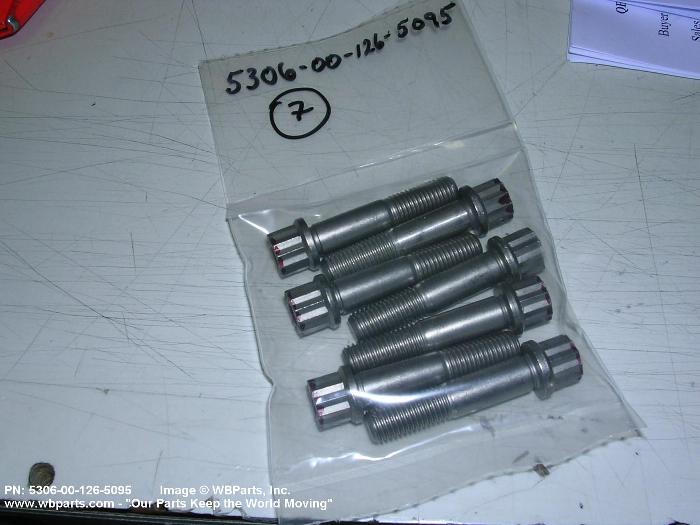 5306-00-126-5095 An externally threaded fastener whose unthreaded portion is of a specified grip length, plated or unplated, and is machined to a tolerance of one thousandth (0.001) of an inch (0.025 mm) or less of a specific diameter for items one inch (25 mm) or less in diameter. Items over one inch (25 mm) in diameter shall have a tolerance of fifteen ten-thousandths (0.0015) of an inch (0.038 mm) or less. The nominal major diameter of the threads shall be at least one thousandth (0.001) of an inch (0.025 mm) below the minimum shank diameter, but not below the minimum major diameter for applicable class of fit, as shown in the Screw Thread Standards, FED STD H28 and/or other nationally recognized standards. The head is not designed to be held or driven with an inserted driver, nor is it designed for rotation by the thumb and fingers. A locking feature may be incorporated in the design of the head or threads. For items having close tolerance, and fabricated from material having 160,000 pounds per square inch (1100 megapascals) minimum tensile strength, see BOLT, SHEAR. For items fabricated from material having less than 160,000 pounds per square inch (1100 megapascals) minimum tensile strength and not having a close tolerance, see BOLT, MACHINE.