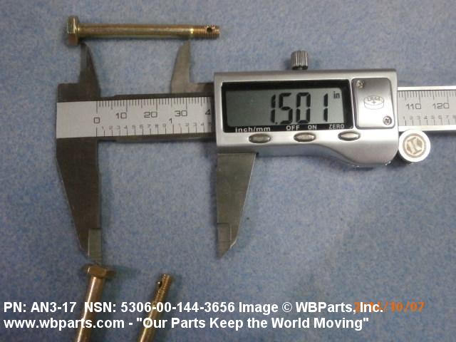 Part Alternates: AN317, AN3-17 , AN352, AN3-52, NASM6812AN352, NASM6812AN3-52, 5306-00-144-3683, 00-144-3683, 5306001443683, 001443683