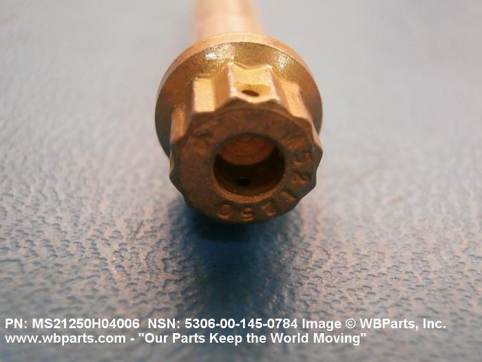 5306-00-145-0784 A high strength, 160,000 pounds per square inch (1100 megapascals) minimum tensile strength externally threaded fastener designed for use in applications involving great shear stress. The head is designed to accommodate an external wrench or driver. The head is not designed to be held or driven with an inserted driver, nor is it designed for rotation by the thumb and fingers. The unthreaded portion is of specific grip length, plated or unplated, and is machined to a tolerance of one thousandth (0.001) of an inch (0.025 mm) or less of a specific diameter for items one inch (25 mm) or less in diameter. Items over one inch (25 mm) in diameter shall have a tolerance of fifteen ten thousandths (0.0015) of an inch (0.038 mm) or less. The nominal major diameter of the threads shall be at least one thousandth (0.001) of an inch (0.025 mm) below the minimum shank diameter, but not below the minimum major diameter for applicable class of fit, as shown in the Screw Thread Standards, FED STD H28 and/or other nationally recognized standards. A locking feature may be incorporated in the design of the head or threads. See BOLT, MACHINE and BOLT, CLEVIS.