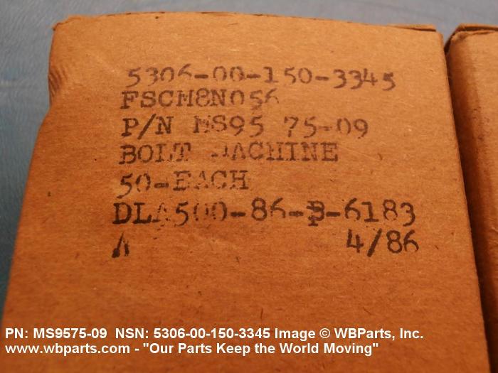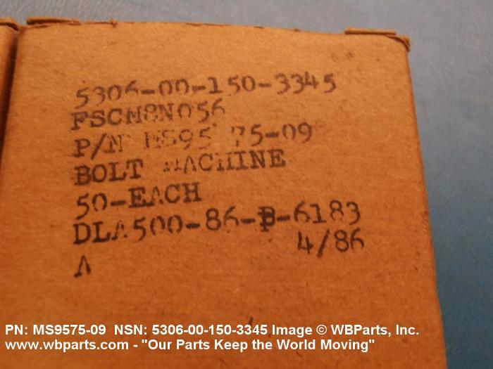 NSN 5306-00-150-3345 MS957509, MS9575-09, 00-150-3345