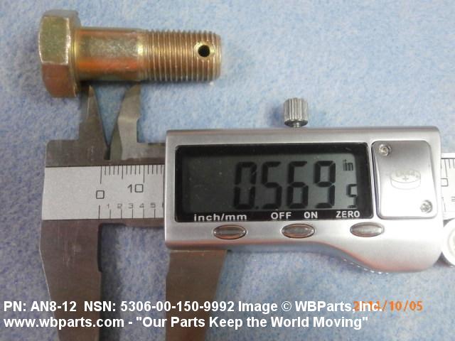Part Alternates: AN812, AN8-12, 5306-00-150-9992, 00-150-9992, 5306001509992, 001509992